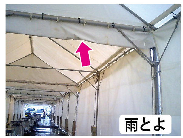 複数張りを並べた際の雨だれ対策や、通路部分の水たまり防止に役立ちます。