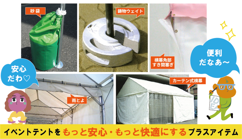 今回は、現場で「これがあって助かった!」と言われ続けているイベントテントのプラスアイテムをまとめてご紹介します。