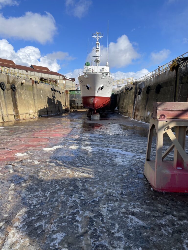今回の施工では、船上の限られたスペースを有効に活用しながら、